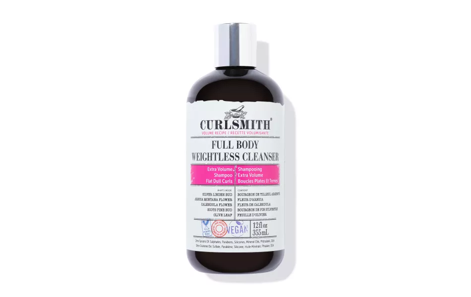 Wil je luchtige, volle krullen zonder dat je haar snel zwaar wordt? De Curlsmith Full Body Weightless Cleanser is een milde, sulfaatvrije shampoo die je haar en hoofdhuid zacht maar effectief reinigt. Het verwijdert productresten en onzuiverheden zonder je haar uit te drogen, en geeft je krullen vanaf de eerste wasbeurt tot wel 153% meer volume en veerkracht. In 2024 werd de combinatie van deze cleanser en de Full Body Milk Conditioner door de Glamour Beauty & Wellness Awards bekroond tot beste luxe shampoo en conditioner voor krullend haar.
