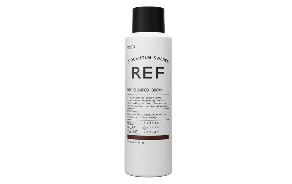 De REF Dry Shampoo Brown N°204 is de ideale droogshampoo voor brunettes die hun haar willen verfrissen tussen wasbeurten door. De formule absorbeert overtollige olie en geeft het haar een matte, luchtige finish met een subtiele bruine tint, zónder witte waas.