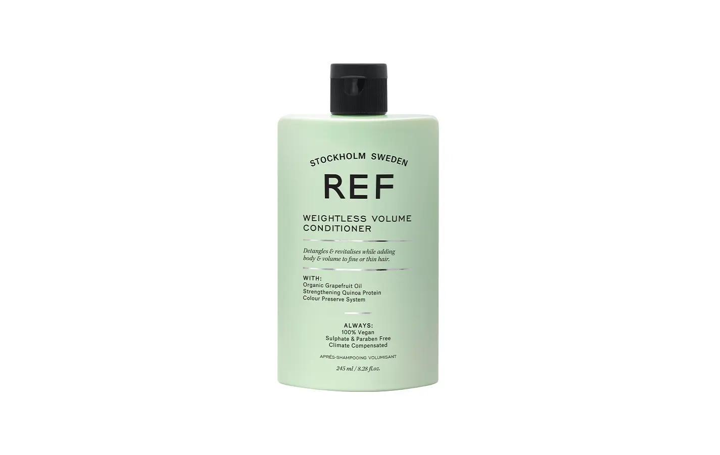 REF Weightless Volume Conditioner is sulfaatvrij en bevat een voedingsde mix van biologische ingrediënten. Is ontwikkeld om de haarstructuur te beschermen, versterken en onmogelijk een natuurlijke volumeboost met glans. Ontwart en verzacht het haar.